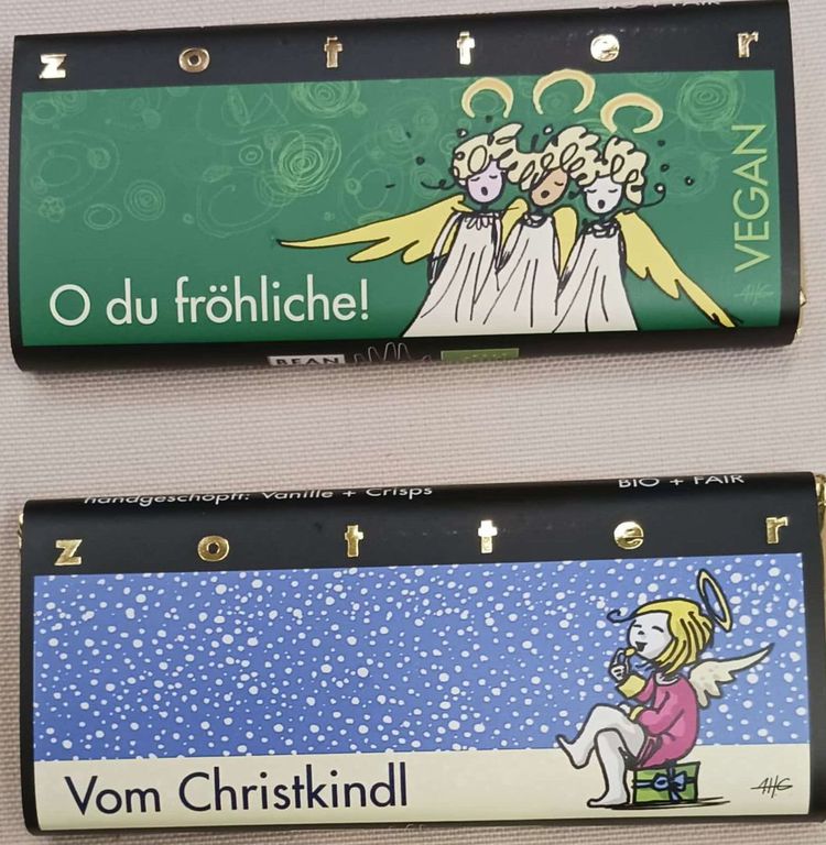 Weihnachts-Leckereien, Nikoläuse, Adventskalender mit Schokolade oder Tee, Mandeln, Spekulatius, Zotter-Schokolade...